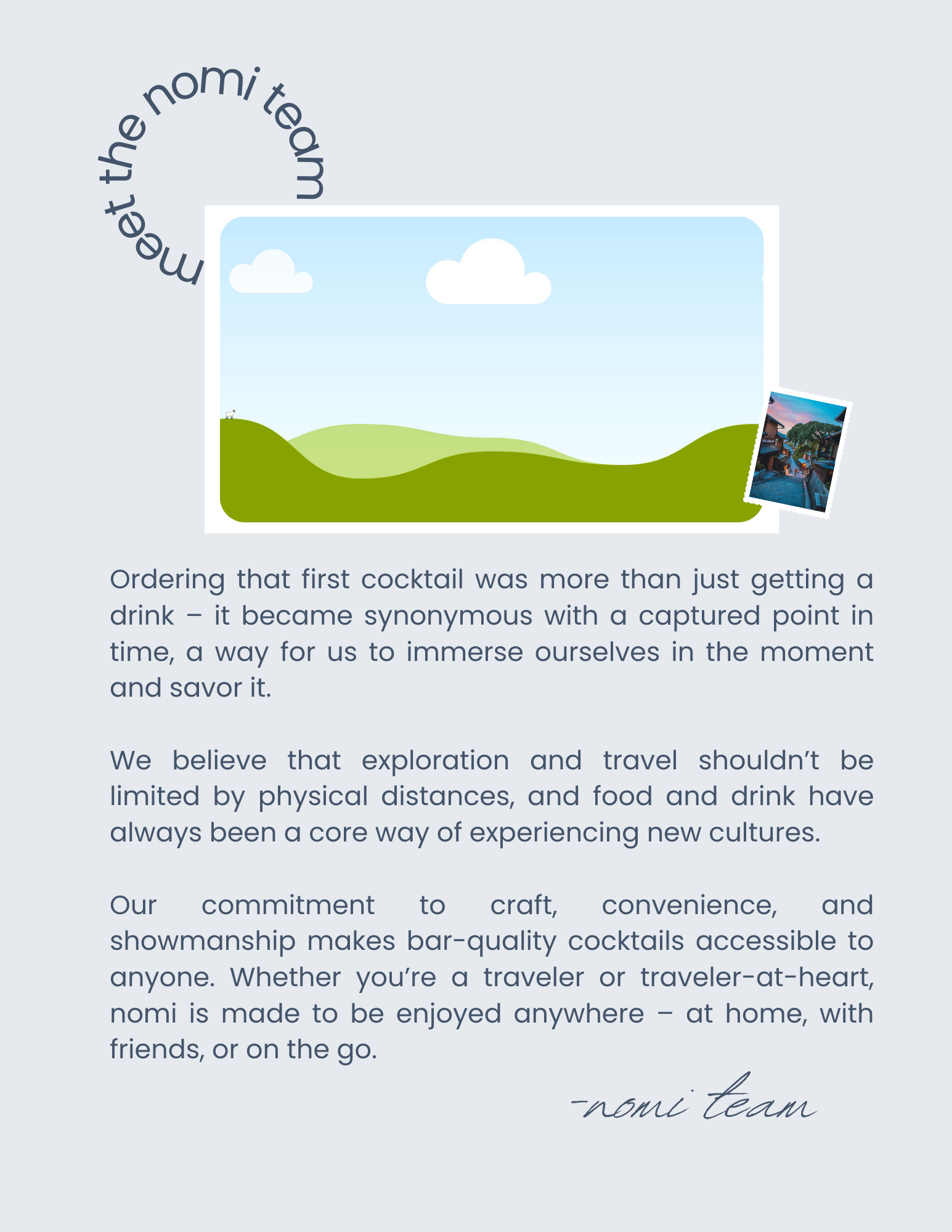 I created three full copies with full imagery for inspiration for website. My work was used as stand in until new imagery was produced for Nomi.